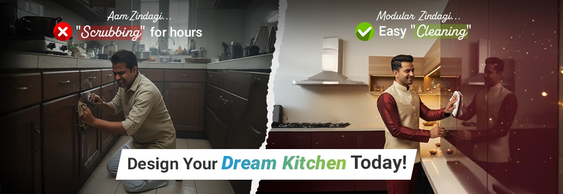 When you make an inquiry, Ultrafresh sends an expert, takes the necessary kitchen measurement and makes a note of your needs and wants. Our design experts will then produce with FRESH design for your kitchen. The design is then finalised, with changes (if made). You pay the booking amount and book your kitchen. Before the final delivery, you complete your payment. The kitchen gets ready in 45 days after placing an order and is installed in 1 – 5 days.
